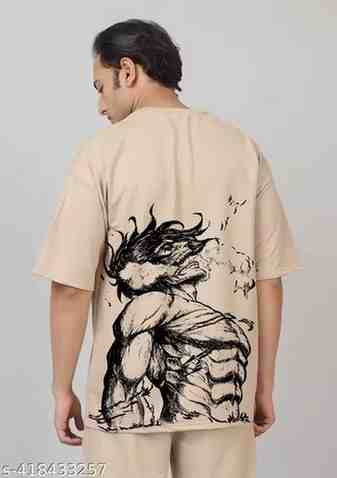 Men’s Oversized Beige T-Shirt – Round Neck, Cotton Blend, Anime Print, Stylish & Comfy Casual Wear (Pack of 1)Men’s Oversized Beige T-Shirt – Round Neck, Cotton Blend, Anime Print, Stylish & Comfy Casual Wear (Pack of 1)