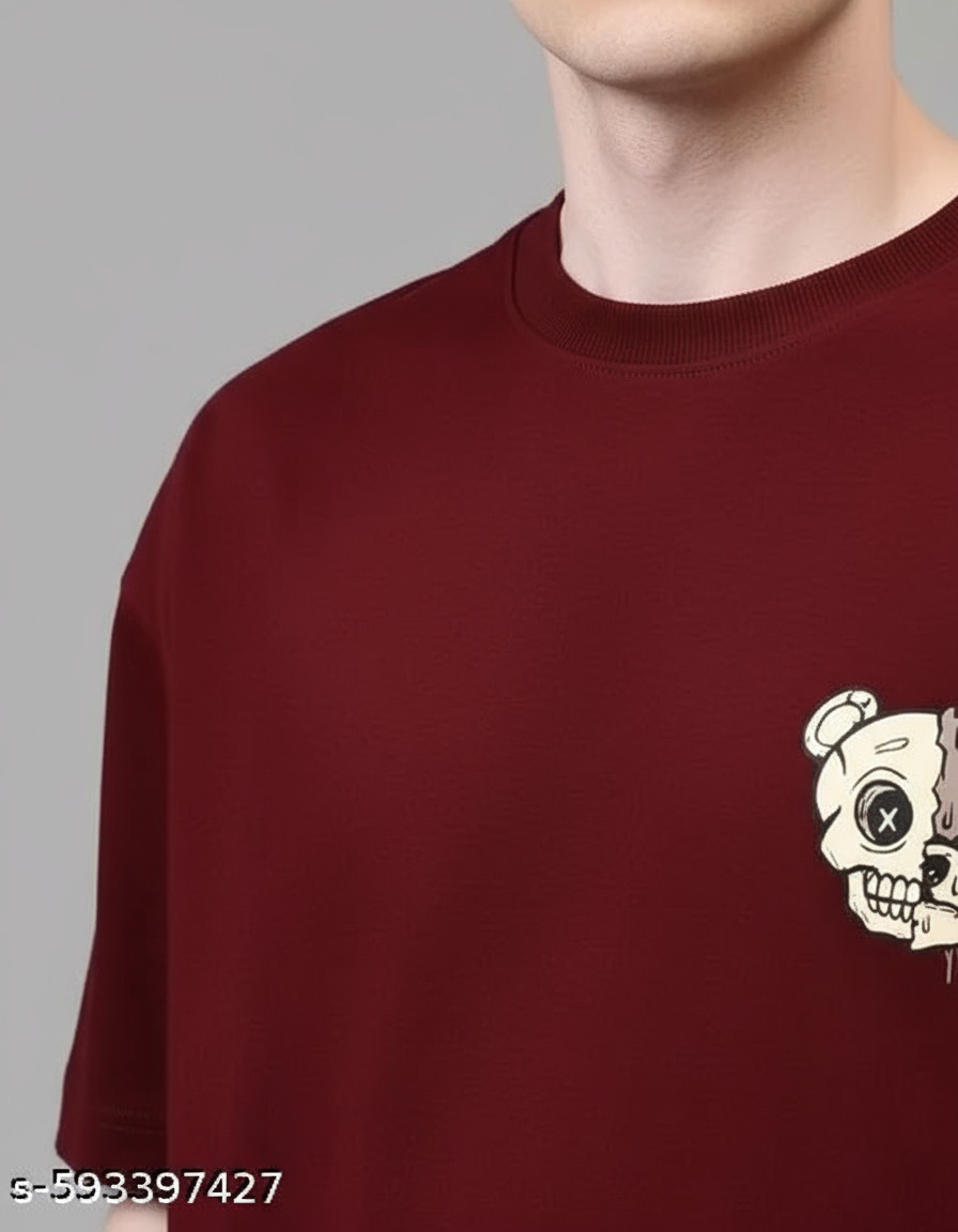 Name : Oversized Men Tshirt | Back Print Comfortable Tshirt for Men | Drop Shoulder Cotton T-shirt | Trendy Oversize Maroon Men Tshirt