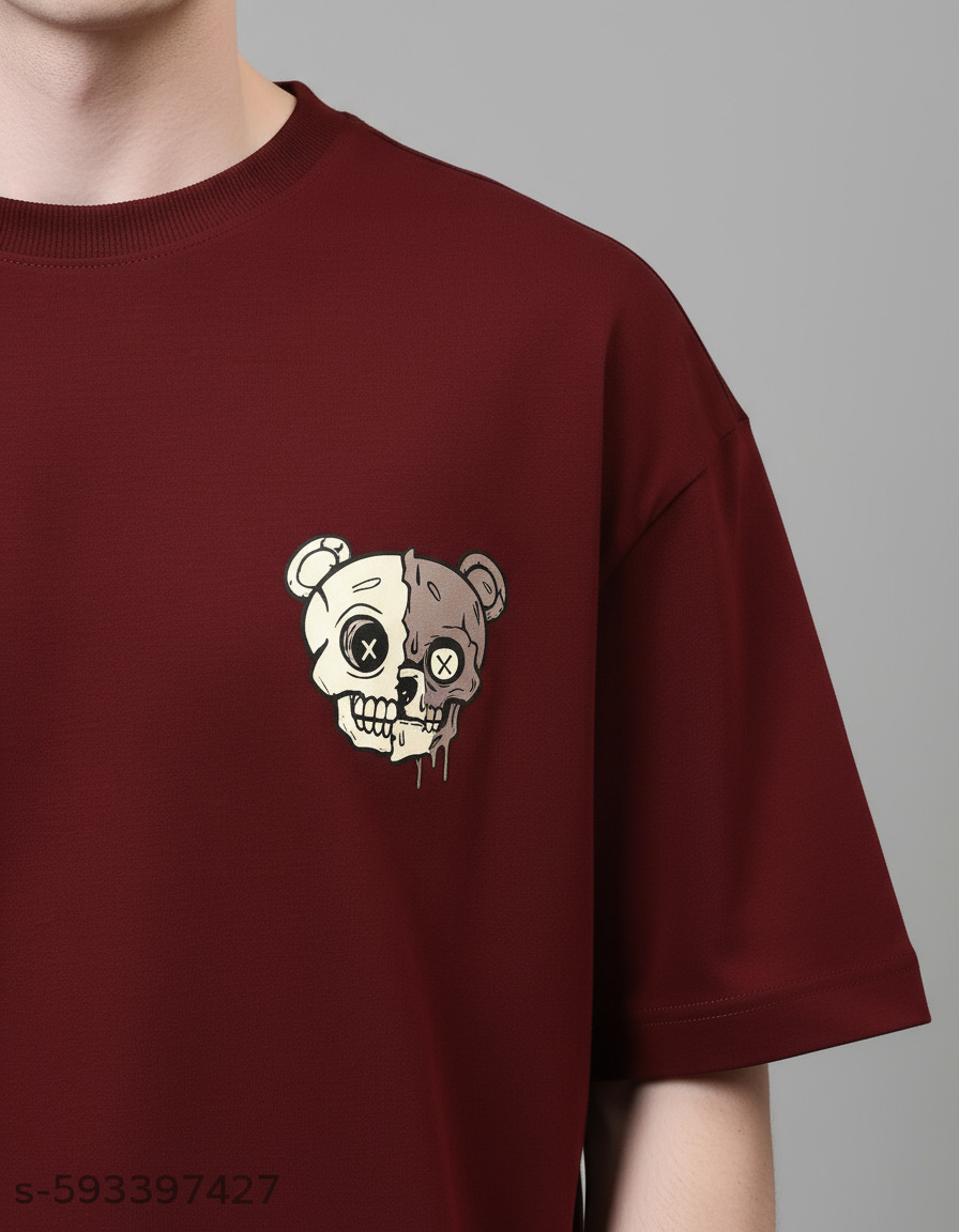 Men’s Oversized Maroon T-Shirt – Drop Shoulder, 100% Cotton, Stylish Back Print & Comfort FitMen’s Oversized Maroon T-Shirt – Drop Shoulder, 100% Cotton, Stylish Back Print & Comfort Fit